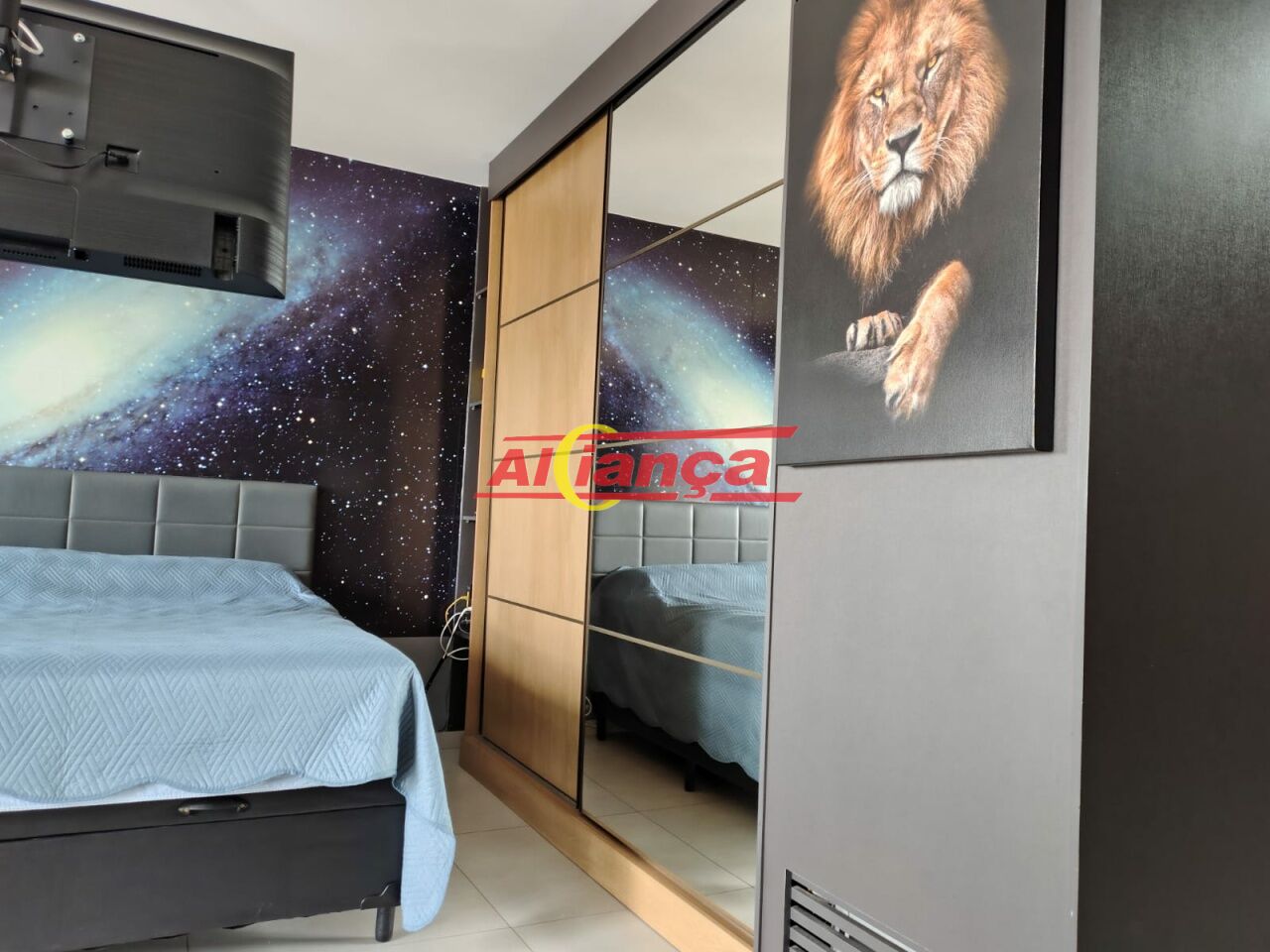 Dormitório com guarda-roupas planejado.