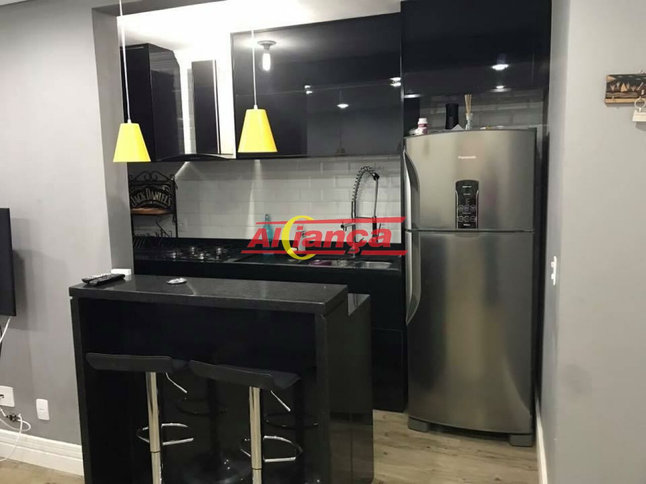 ´todo em piso vinículo, acabamento de primeira qualidade,cooktop na cozinha, armário planejado, e balcão em prdra de granito preta.