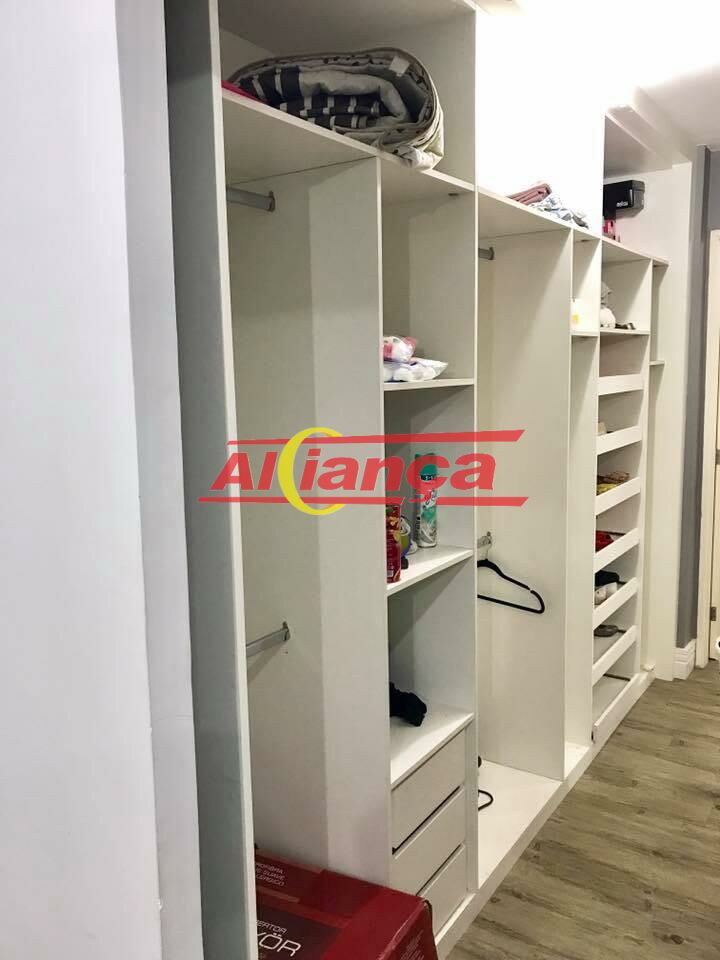 dormitório com papel de parede, closet, Spots de led na sala, rodapés de polietileno.