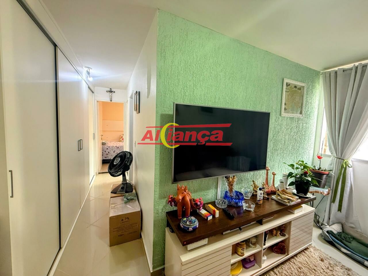 Apartamento muito bem cuidado, com móveis planejados em alguns dos ambientes.