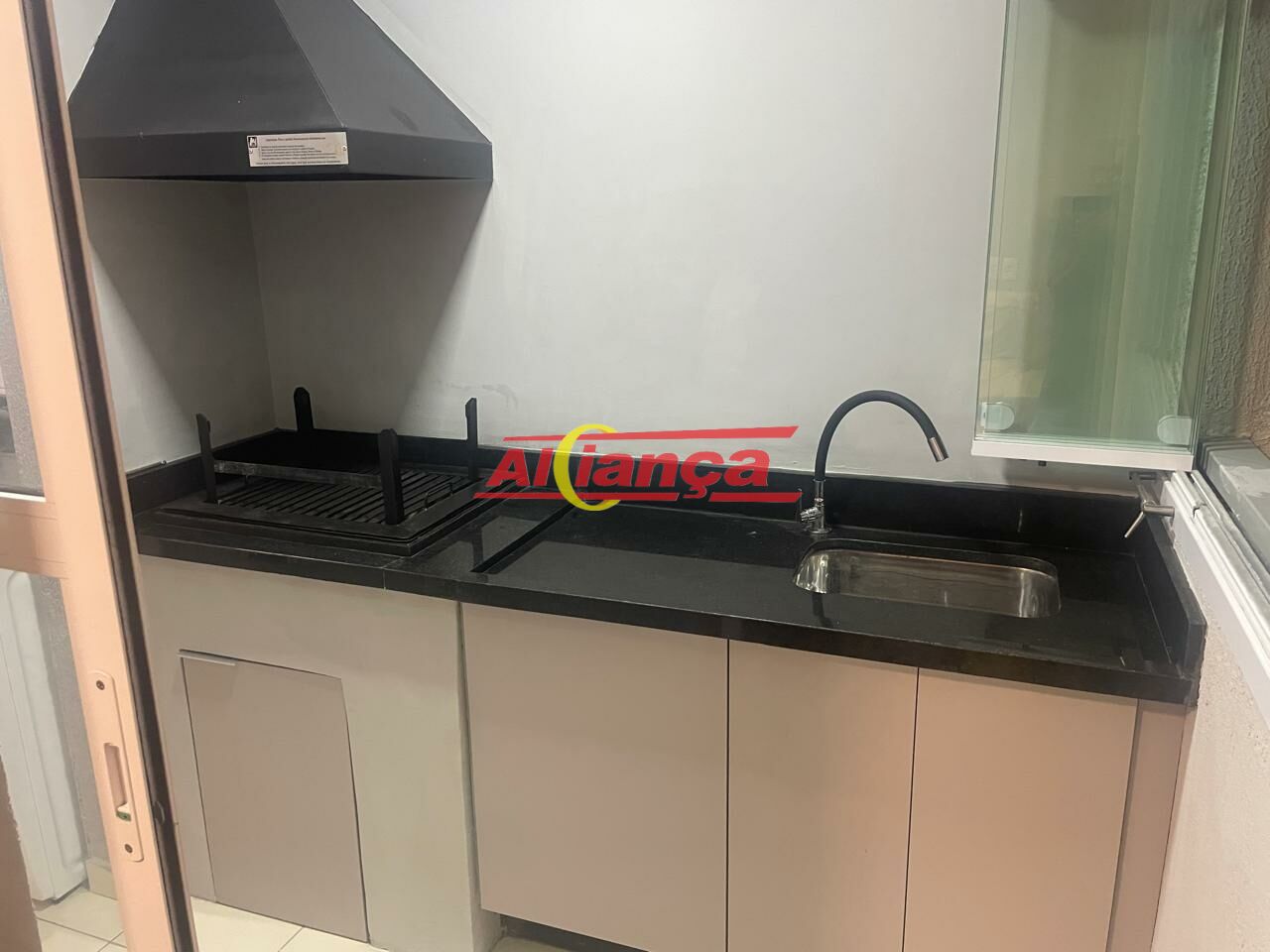 CHURRASQUEIRA COM PIA EM MARMORE, ARMARIOS E FECHAMENTO .
