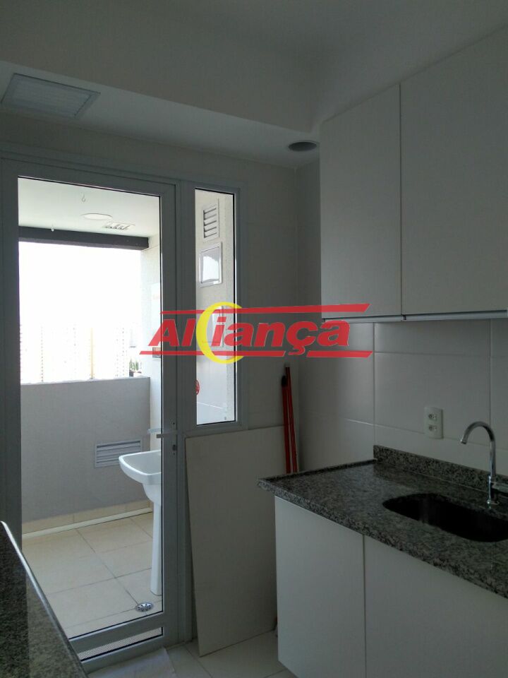 Apartamento com Varanda Gourmet, Quarto, Sala para Dois Ambientes, Cozinha Americana Com Porta de Vidro Separando a Lavanderia e Banheiro Social.
