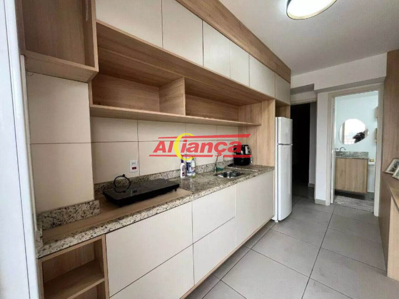 24,93m², 1 dormitório, 1 banheiro, cozinha, e área de serviço.