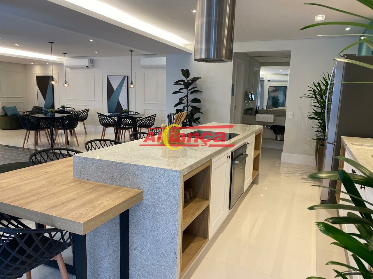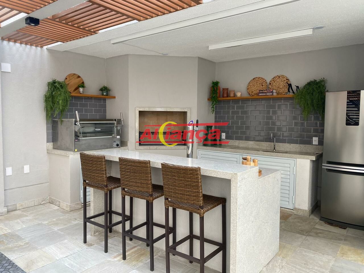 Varanda gourmet entregue com churrasqueira a carvão completa, com grelha em aço inox, espetos, ventoinha e iluminação. Qual é a vantagem? Conforto e comodidade e o melhor: você pode fazer seu churrasco assim que se mudar.