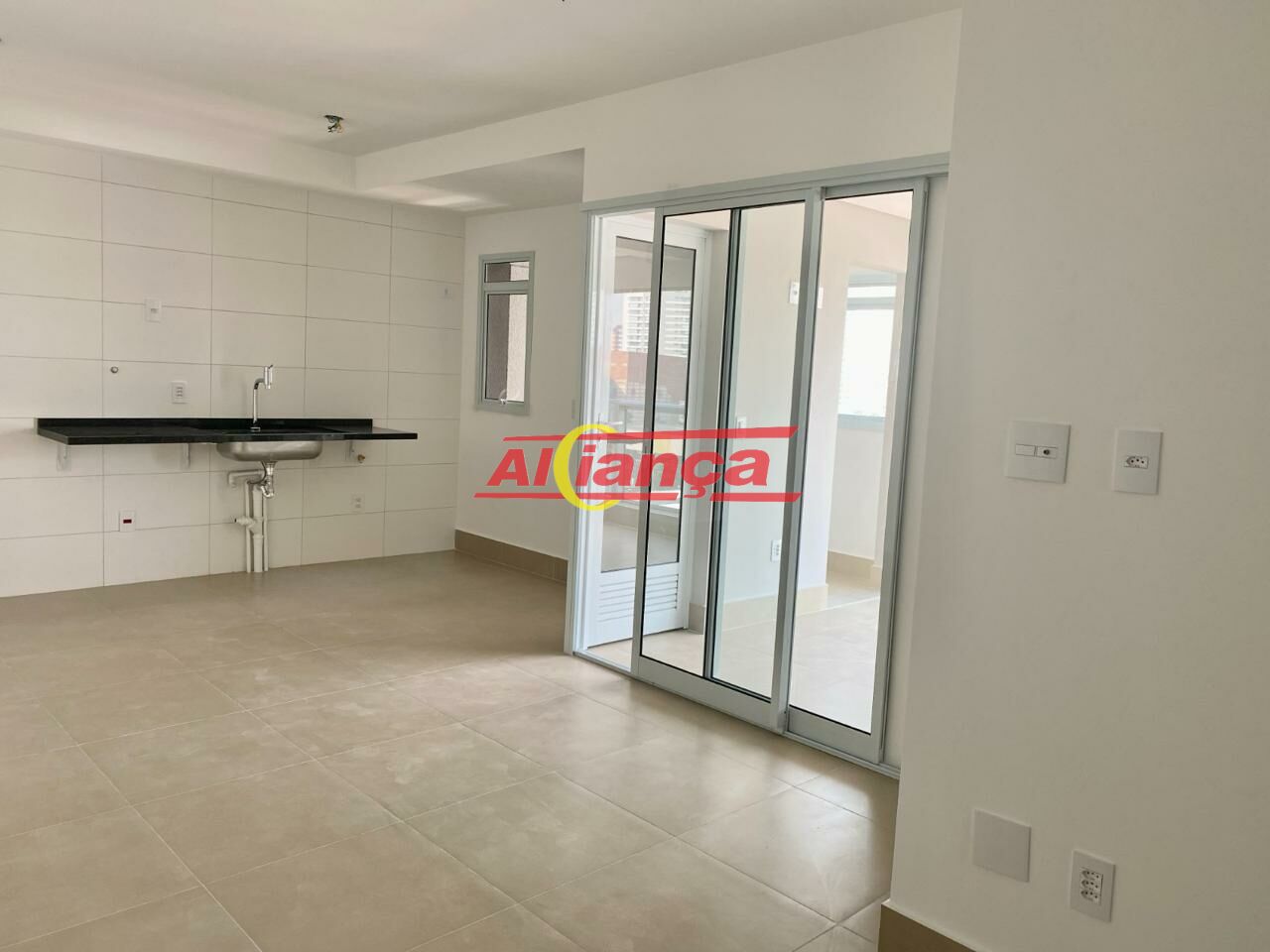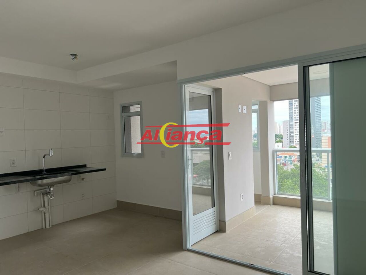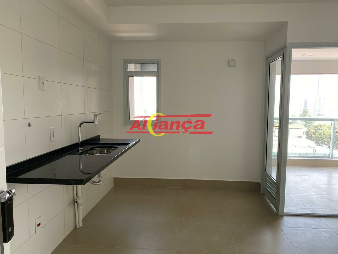 Área de serviço separada da cozinha e com iluminação natural. Qual é a vantagem? O apartamento fica mais organizado, mais bonito e ventilado.