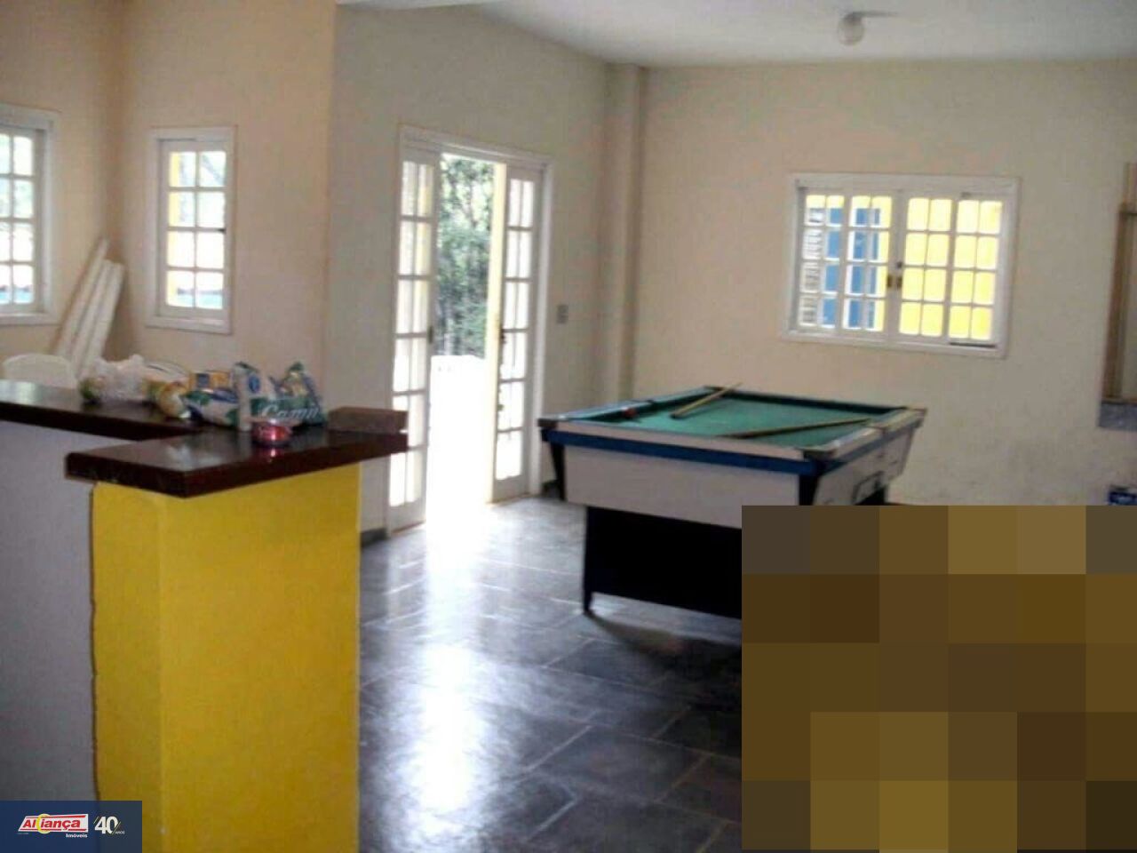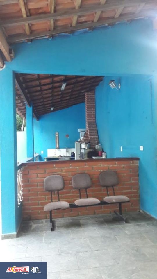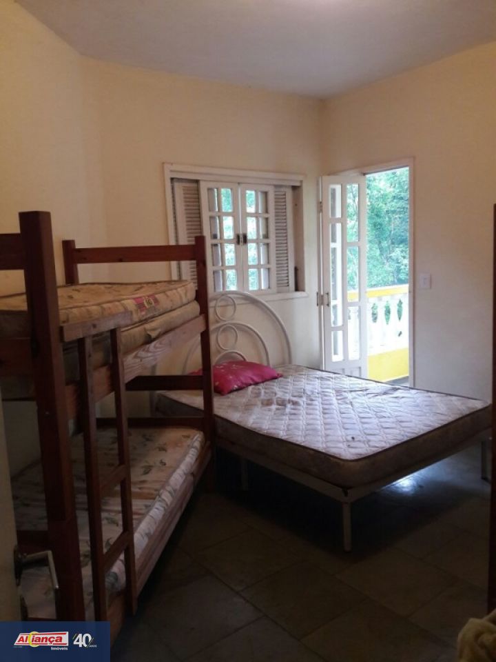 Com 03 quartos, sendo 01 suíte, Sala ampla conjugada com a cozinha, 03 banheiros, dois internos e 01 externo na área da piscina, Sala de jogos,  Piscina 8x4 mt, com cascata,   Churrasqueira, 03 geladeiras e 02 freezer, 02 fogões, Micro -Ondas, Forno elétrico, Filtro de água potável gelada, 02 redes para balanço, 04 beliches 01 cama de casal e 04 colchões de casal e mais 05 colchões de solteiro (avulsos), Tv aberta, Estacionamento interno para até 10 carros.