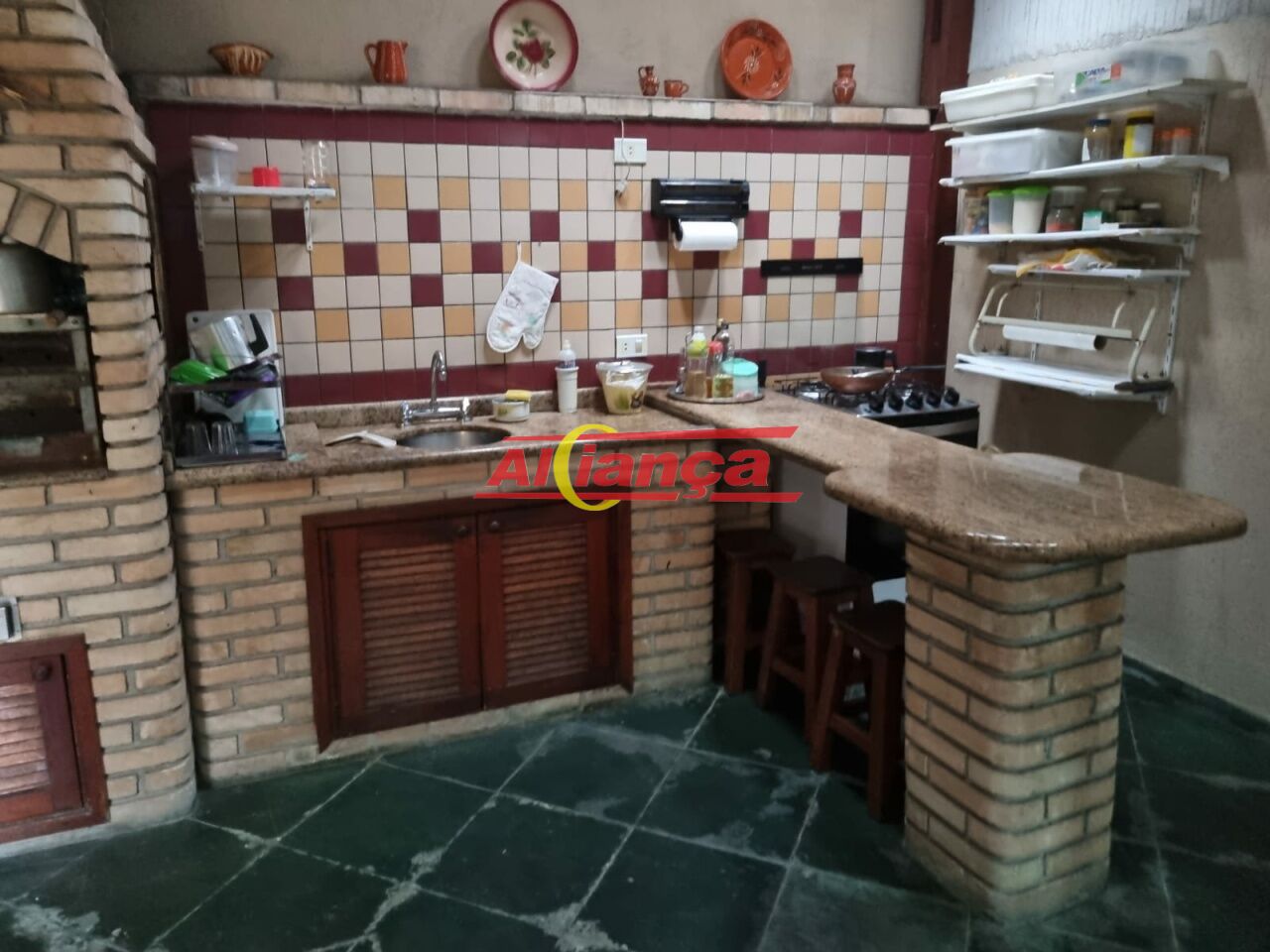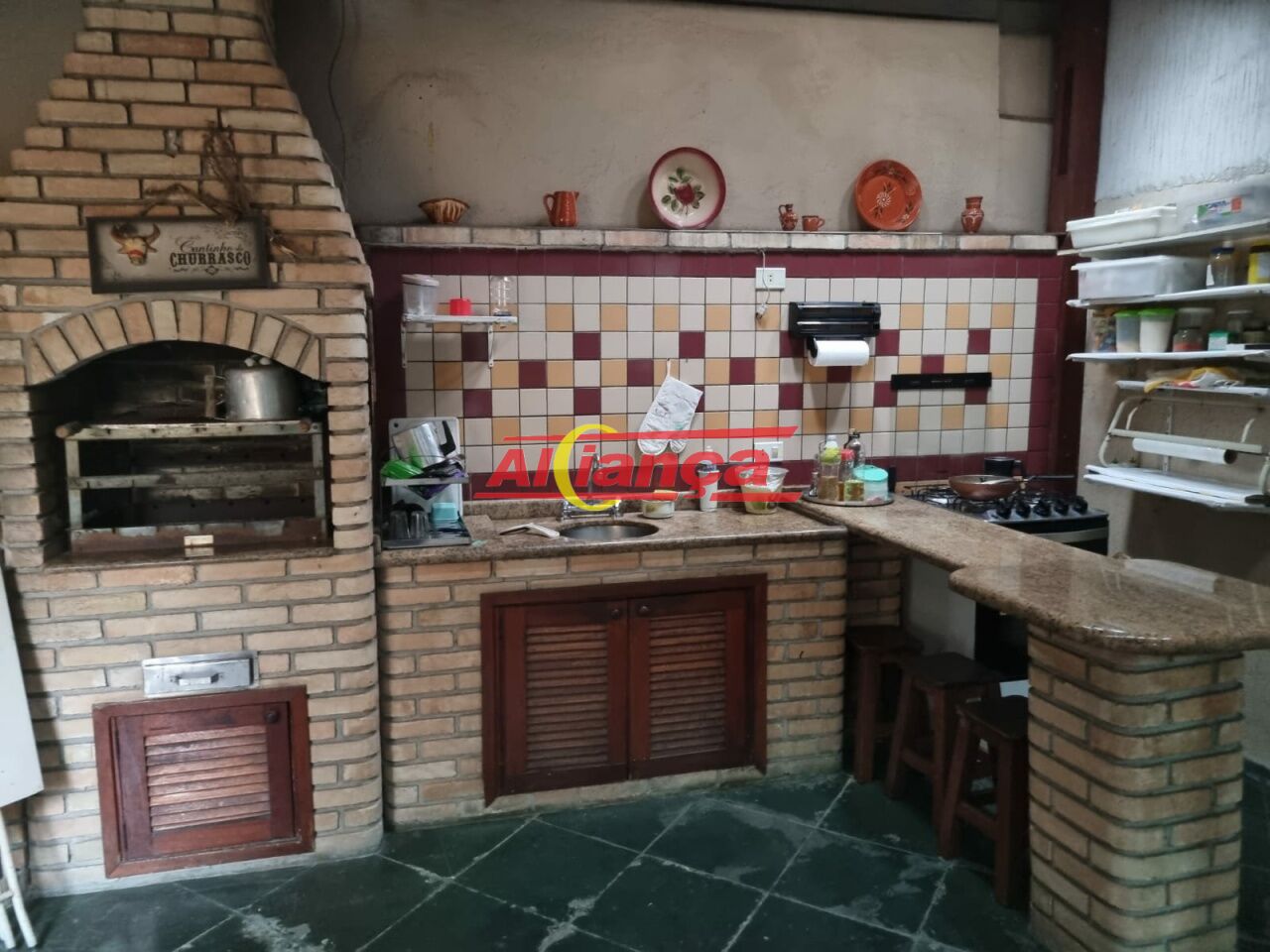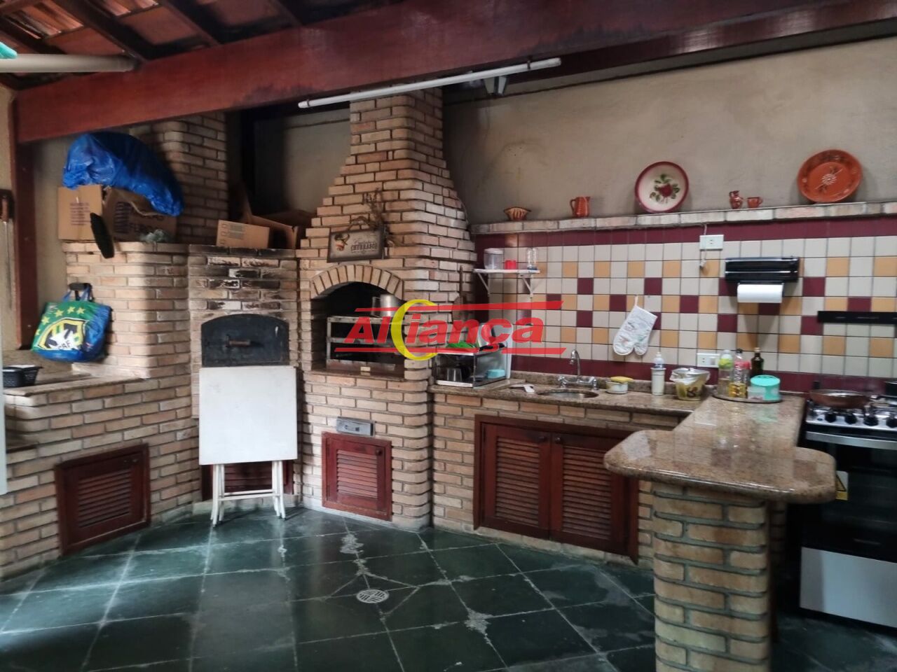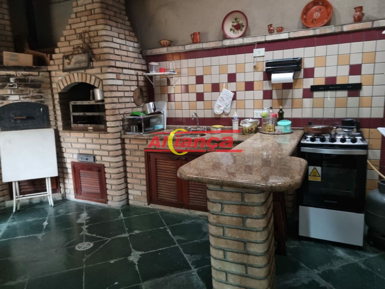 Espaço Gourmet com Churrasqueira , Forno a Lenha e balcão e pi sob medida.