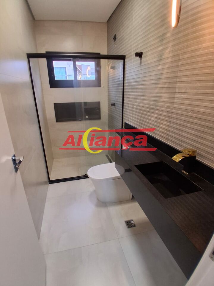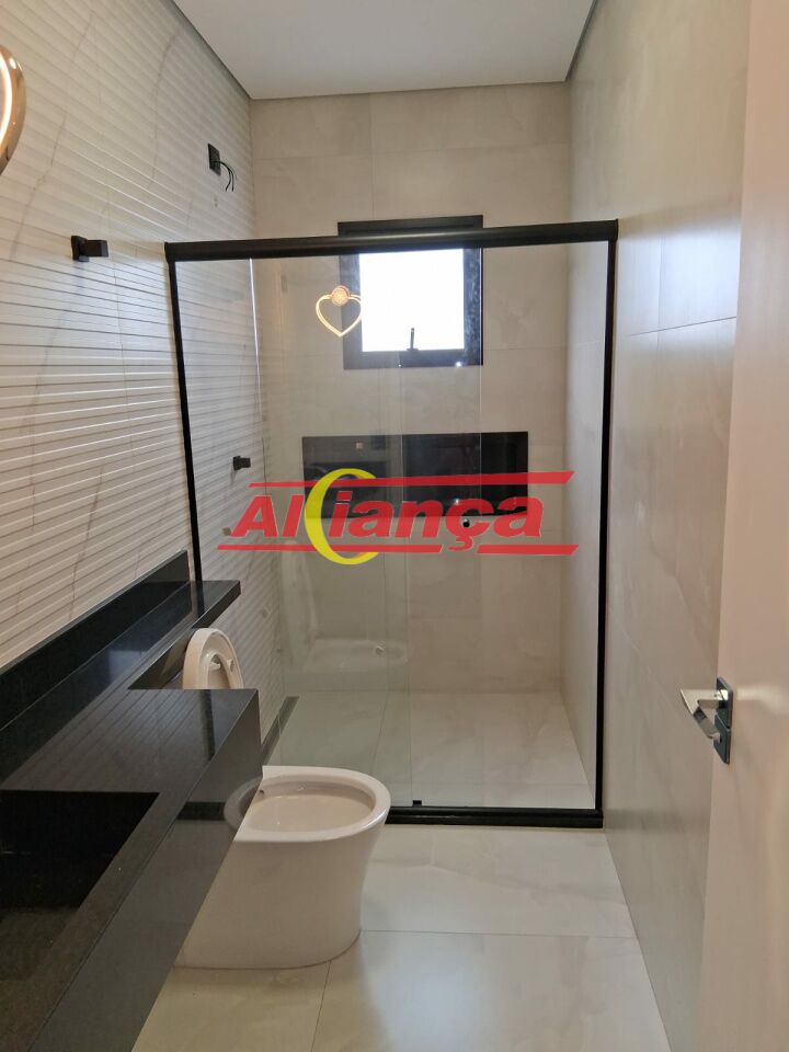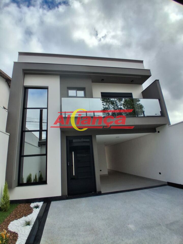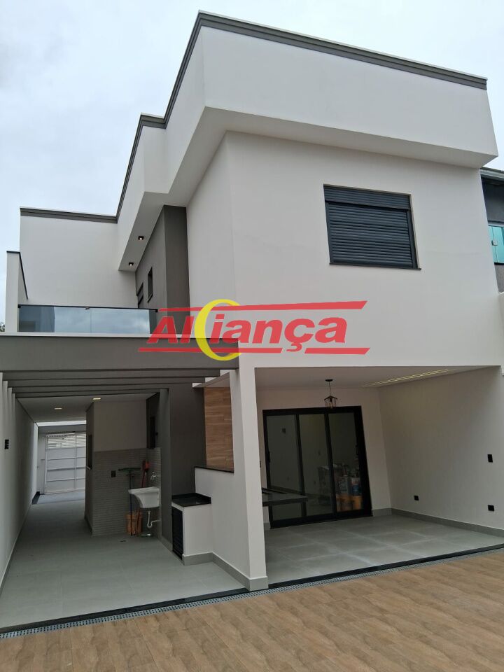 Sobrado residencial novo, fino acabamento, no Carmela III, Guarulhos, SP com 3 quartos, sendo uma suíte com sacada, sala de jantar, sala de estar, cozinha ampla e moderna, 3 banheiros, área gourmet com possibilidade de instalação de piscina pois já existe infraestrutura e garagem para 3 carros, sendo uma das vagas coberta.